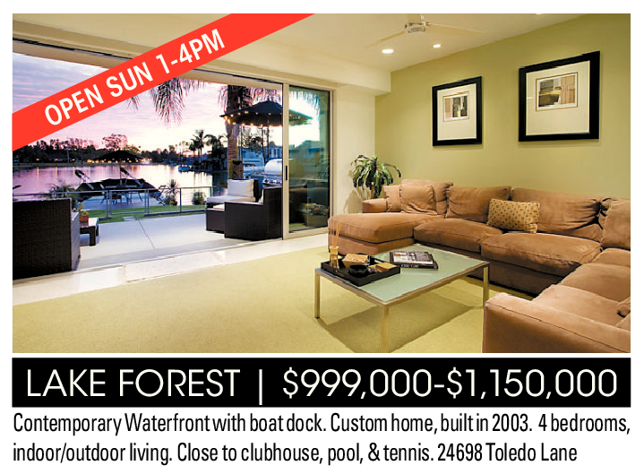 Contemporary Waterfront with boat dock. Custom home, built in 2003. 4 bedrooms, indoor/outdoor living. Close to clubhouse, pool, & tennis. 24698 Toledo Lane