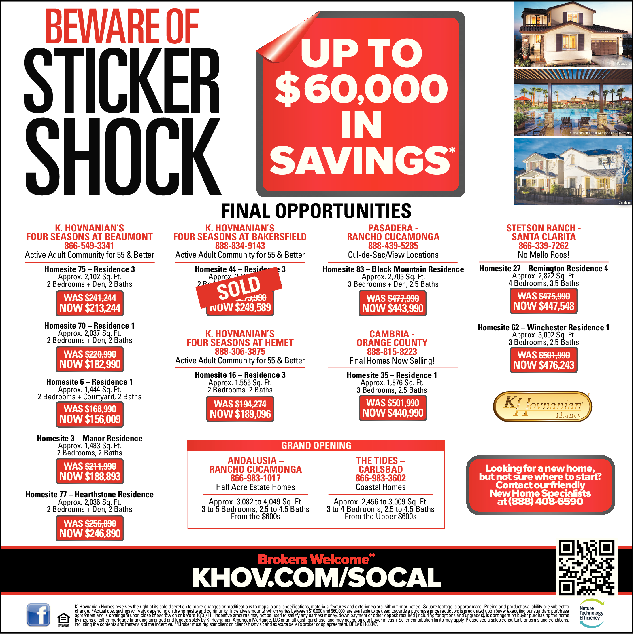 K. Hovnanian Homes reserves the right at its sole discretion to make changes or modifications to maps, plans, specifications, materials, features and exterior colors without prior notice. Square footage is approximate. Pricing and product availability are subject to change. *Actual cost savings will vary depending on the homesite and community. Incentive amounts, which varies between $10,000 and $60,000, are available to be used towards a purchase price reduction; is predicated upon buyer executing our standard purchase agreement and is contingent upon close of escrow on or before 10/31/11. Incentive amounts may not be used to satisfy any earnest money, down payment or other deposit required (including for options and upgrades), is contingent on buyer purchasing the home by means of either mortgage financing arranged and funded solely by K. Hovnanian American Mortgage, LLC or an all-cash purchase, and may not be paid to buyer in cash. Seller contribution limits may apply. Please see a sales consultant for terms and conditions, including the contents and materials of the incentive. **Broker must register client on client’s first visit and execute seller’s broker coop agreement. DRE# 01183847.
