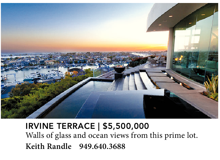 IRVINE TERRACE | $5,500,000 Walls of glass and ocean views from this prime lot. Keith Randle 949.640.3688