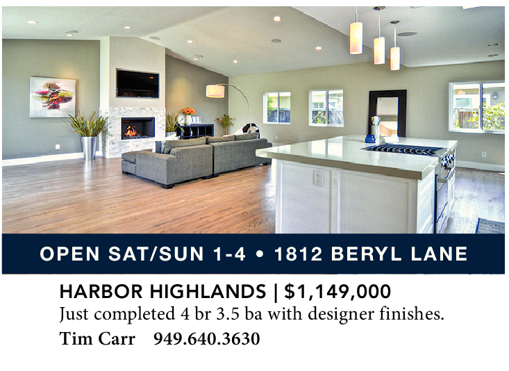 HARBOR HIGHLANDS | $1,149,000 Just completed 4 br 3.5 ba with designer finishes. Tim Carr 949.640.3630