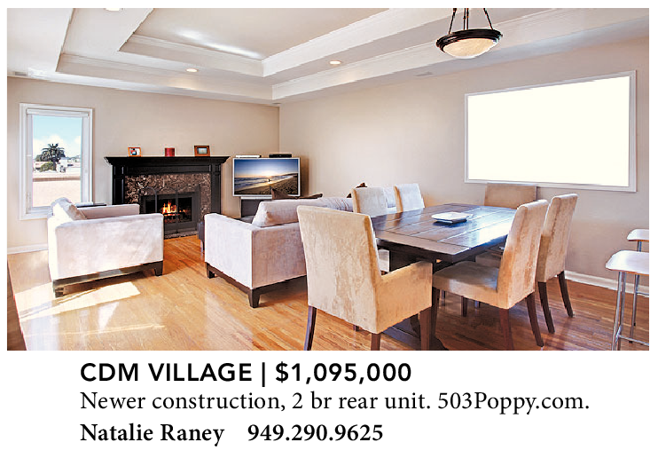 CDM VILLAGE | $1,095,000 Newer construction, 2 br rear unit. 503Poppy.com. Natalie Raney 949.290.9625