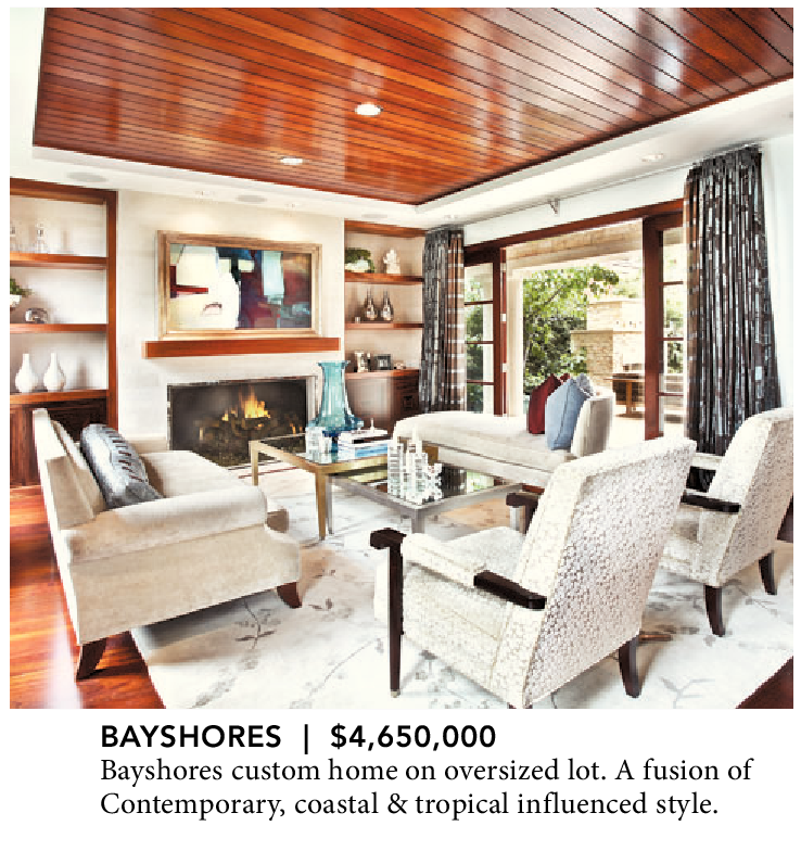 BAYSHORES | $4,650,000 Bayshores custom home on oversized lot. A fusion of Contemporary, coastal & tropical influenced style.