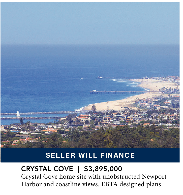 CRYSTAL COVE | $3,895,000 Crystal Cove home site with unobstructed Newport Harbor and coastline views. EBTA designed plans.