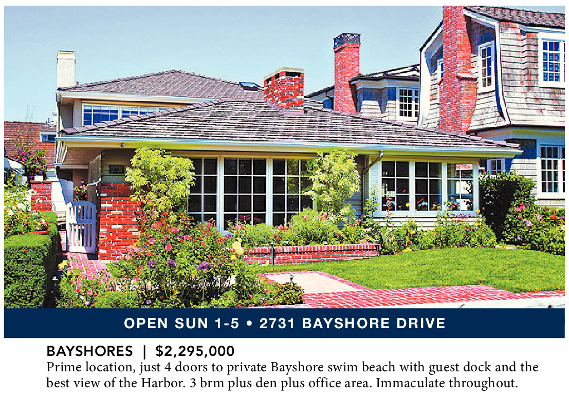 BAYSHORES | $2,295,000 Prime location, just 4 doors to private Bayshore swim beach with guest dock and the best view of the Harbor. 3 brm plus den plus office area. Immaculate throughout.