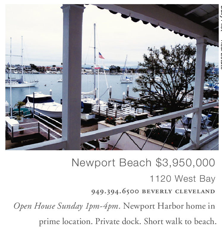 Newport Beach $3,950,000 1120 West Bay 949.394.6500 beverly cleveland Open House Sunday 1pm-4pm. Newport Harbor home in prime location. Private dock. Short walk to beach.