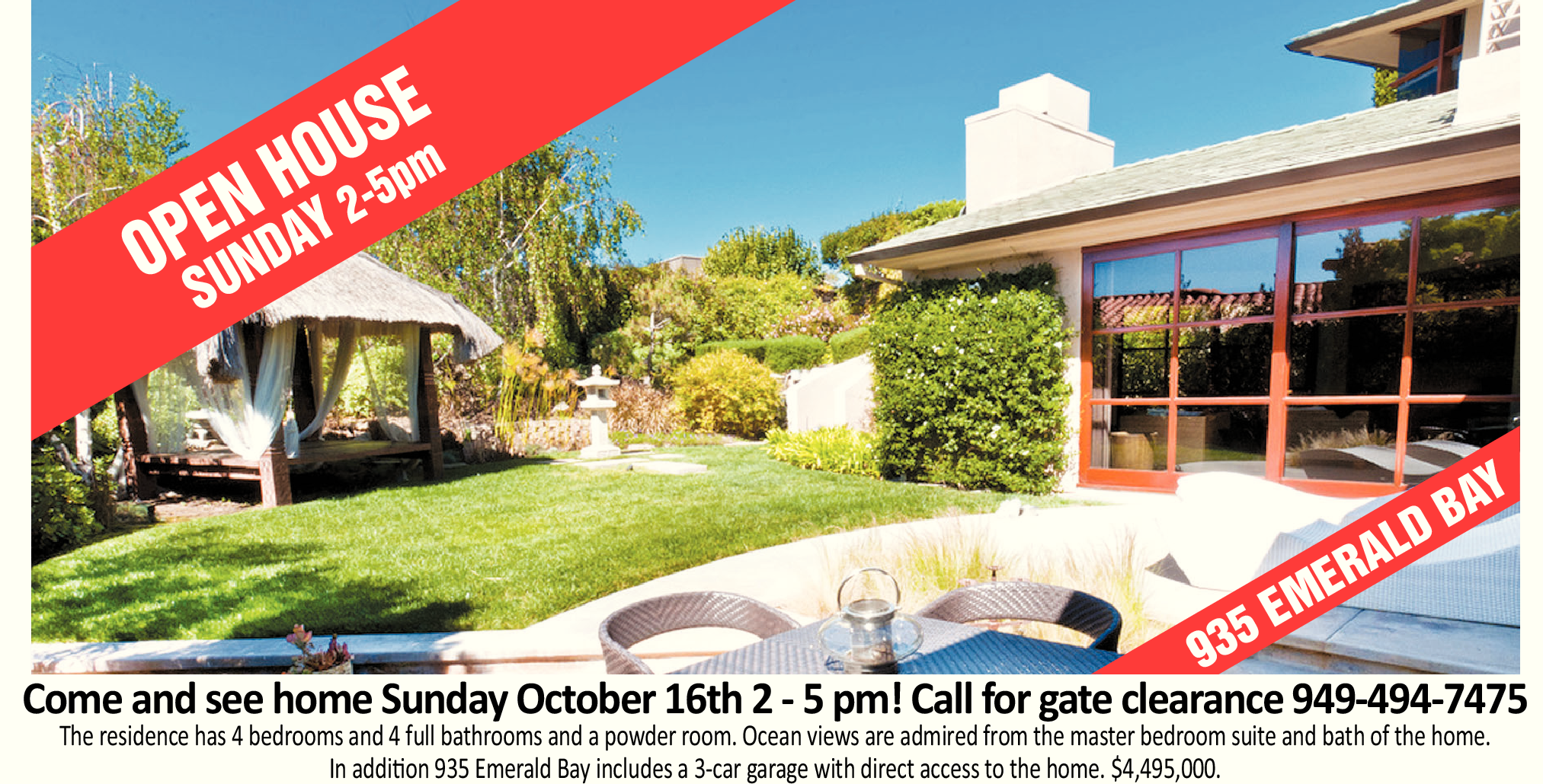 In addition 935 Emerald Bay includes a 3-car garage with direct access to the home. $4,495,000.