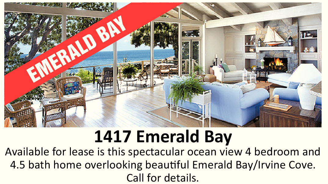 Available for lease is this spectacular ocean view 4 bedroom and 4.5 bath home overlooking beautiful Emerald Bay/Irvine Cove.