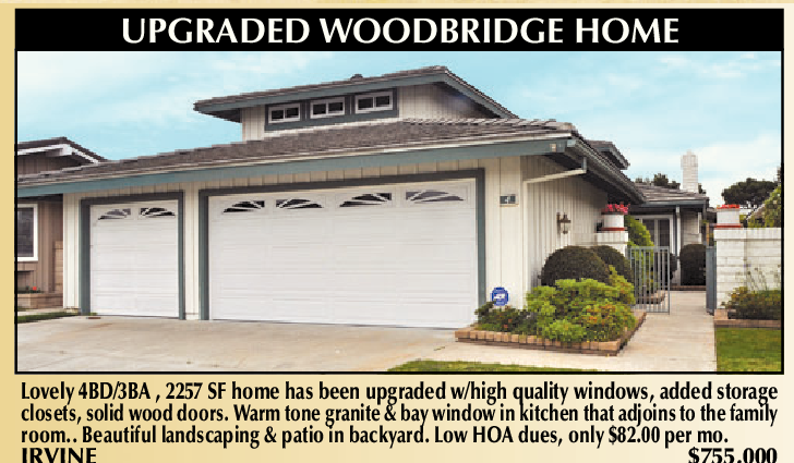 Lovely 4BD/3BA , 2257 SF home has been upgraded w/high quality windows, added storage closets, solid wood doors. Warm tone granite & bay window in kitchen that adjoins to the family room.. Beautiful landscaping & patio in backyard. Low HOA dues, only $82.00 per mo. IRVINE $755,000