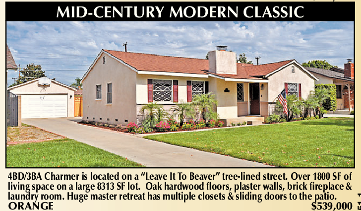 4BD/3BA Charmer is located on a “Leave It To Beaver” tree-lined street. Over 1800 SF of living space on a large 8313 SF lot. Oak hardwood floors, plaster walls, brick fireplace & laundry room. Huge master retreat has multiple closets & sliding doors to the patio. ORANGE $539,000
