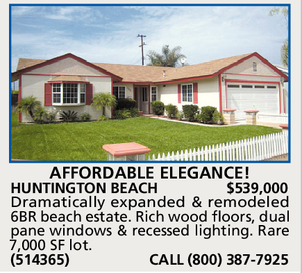 HUNTINGTON BEACH $539,000 Dramatically expanded & remodeled 6BR beach estate. Rich wood floors, dual pane windows & recessed lighting. Rare 7,000 SF lot. (514365) CALL (800) 387-7925