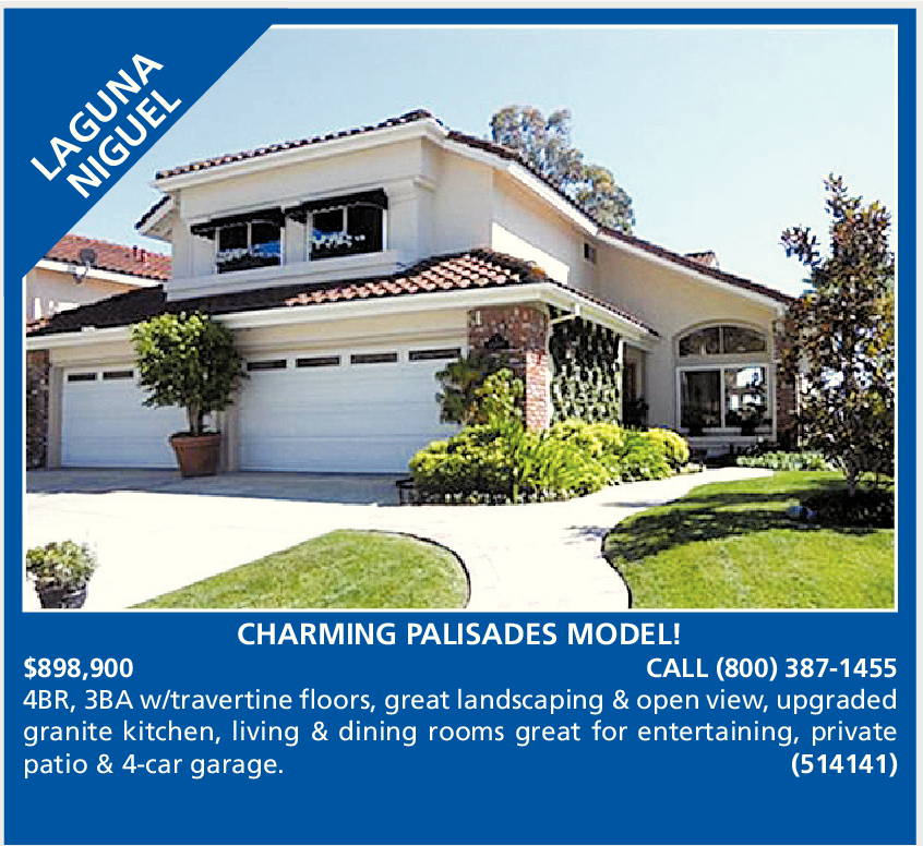 $898,900 CALL (800) 387-1455 4BR, 3BA w/travertine floors, great landscaping & open view, upgraded granite kitchen, living & dining rooms great for entertaining, private patio & 4-car garage. (514141)