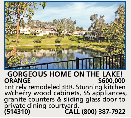 ORANGE $600,000 Entirely remodeled 3BR. Stunning kitchen w/cherry wood cabinets, SS appliances, granite counters & sliding glass door to private dining courtyard. (514310) CALL (800) 387-7922