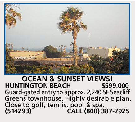 HUNTINGTON BEACH $599,000 Guard-gated entry to approx. 2,240 SF Seacliff Greens townhouse. Highly desirable plan. Close to golf, tennis, pool & spa. (514293) CALL (800) 387-7925