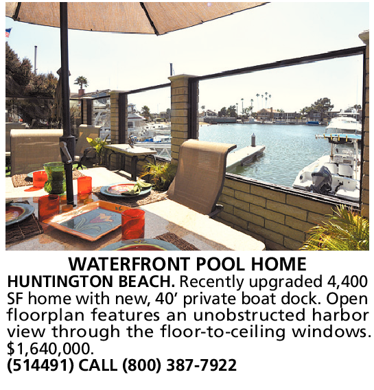 WATERFRONT POOL HOME HUNTINGTON BEACH. Recently upgraded 4,400 SF home with new, 40’ private boat dock. Open floorplan features an unobstructed harbor view through the floor-to-ceiling windows.