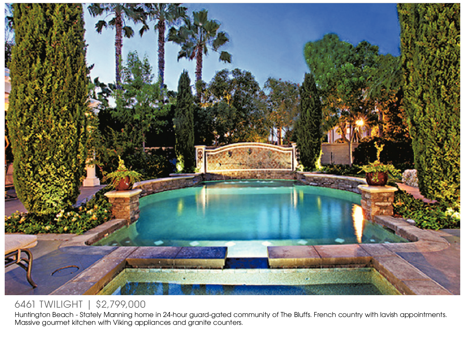 6461 TWILIGHT | $2,799,000 Huntington Beach - Stately Manning home in 24-hour guard-gated community of The Bluffs. French country with lavish appointments. Massive gourmet kitchen with Viking appliances and granite counters.