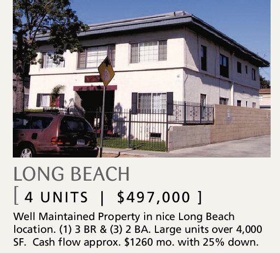 Well Maintained Property in nice Long Beach location. (1) 3 BR & (3) 2 BA. Large units over 4,000 SF. Cash flow approx. $1260 mo. with 25% down.