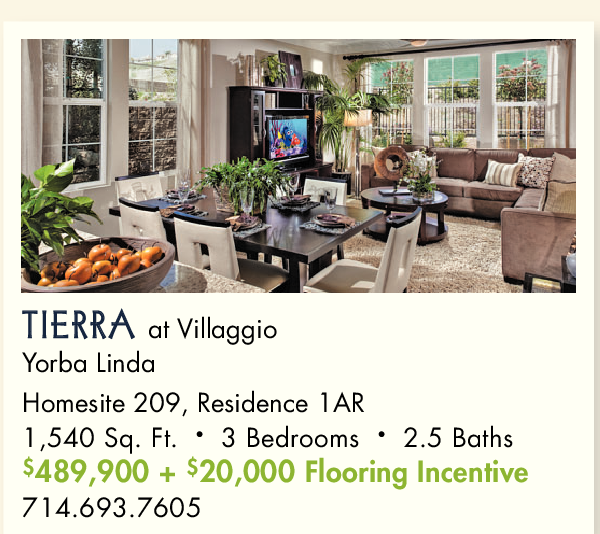 Homesite 209, Residence 1AR 1,540 Sq. Ft. • 3 Bedrooms • 2.5 Baths $489,900 + $ 20,000 Flooring Incentive 714.693.7605