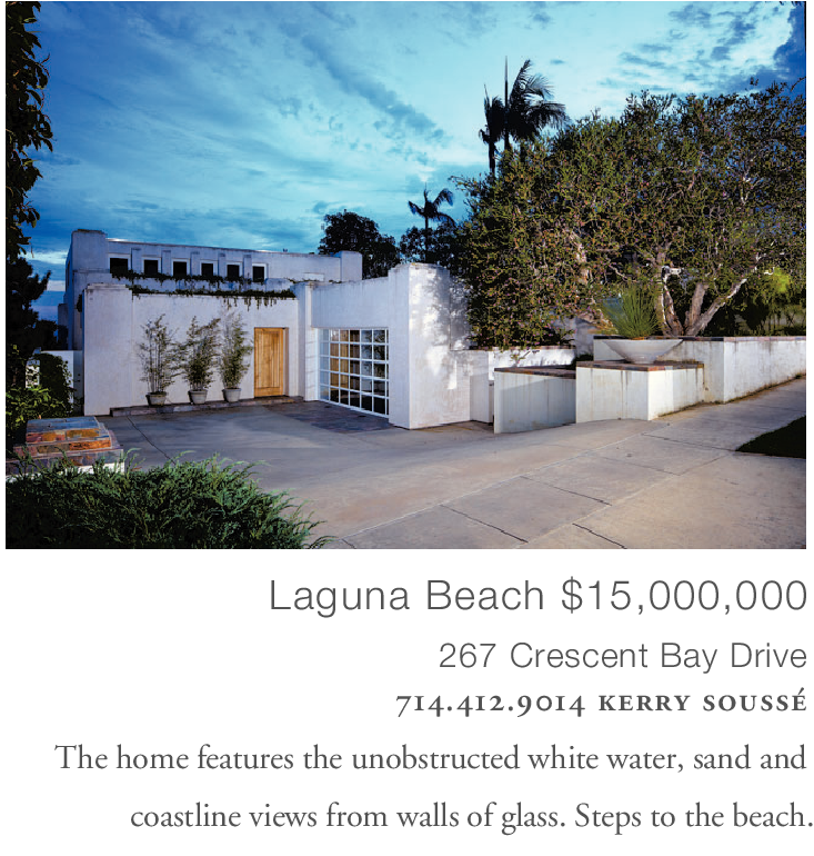 Laguna Beach $15,000,000 267 Crescent Bay Drive 714.412.9014 kerry soussé The home features the unobstructed white water, sand and coastline views from walls of glass. Steps to the beach.