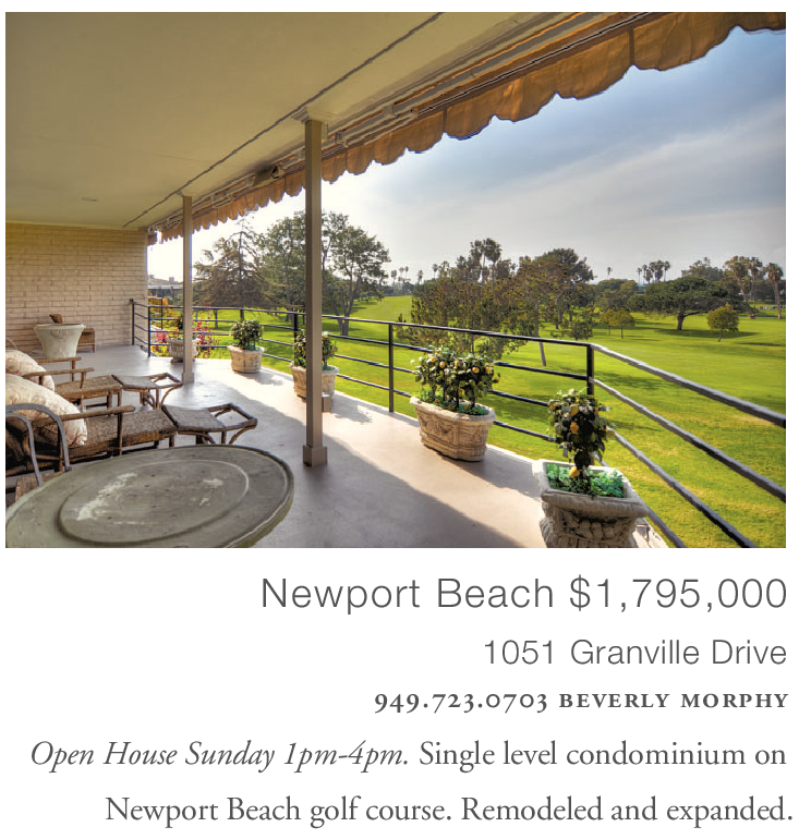 Newport Beach $1,795,000 1051 Granville Drive 949.723.0703 beverly morphy Open House Sunday 1pm-4pm. Single level condominium on Newport Beach golf course. Remodeled and expanded.