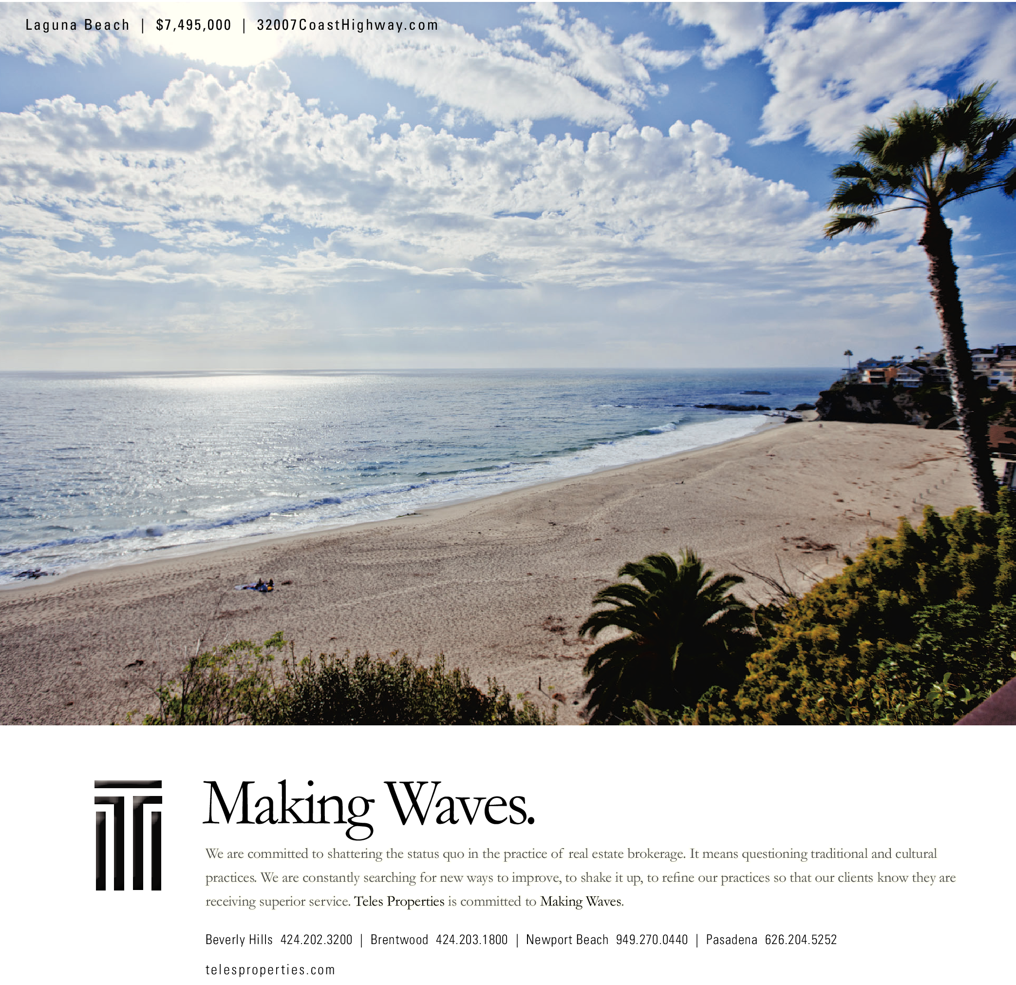 Laguna Beach | $7,495,000 | 32007CoastHighway.com Making Waves. We are committed to shattering the status quo in the practice of real estate brokerage. It means questioning traditional and cultural receiving superior service. Teles Properties is committed to Making Waves. Beverly Hills 424.202.3200 | Brentwood 424.203.1800 | Newport Beach 949.270.0440 | Pasadena 626.204.5252 telesproperties.com