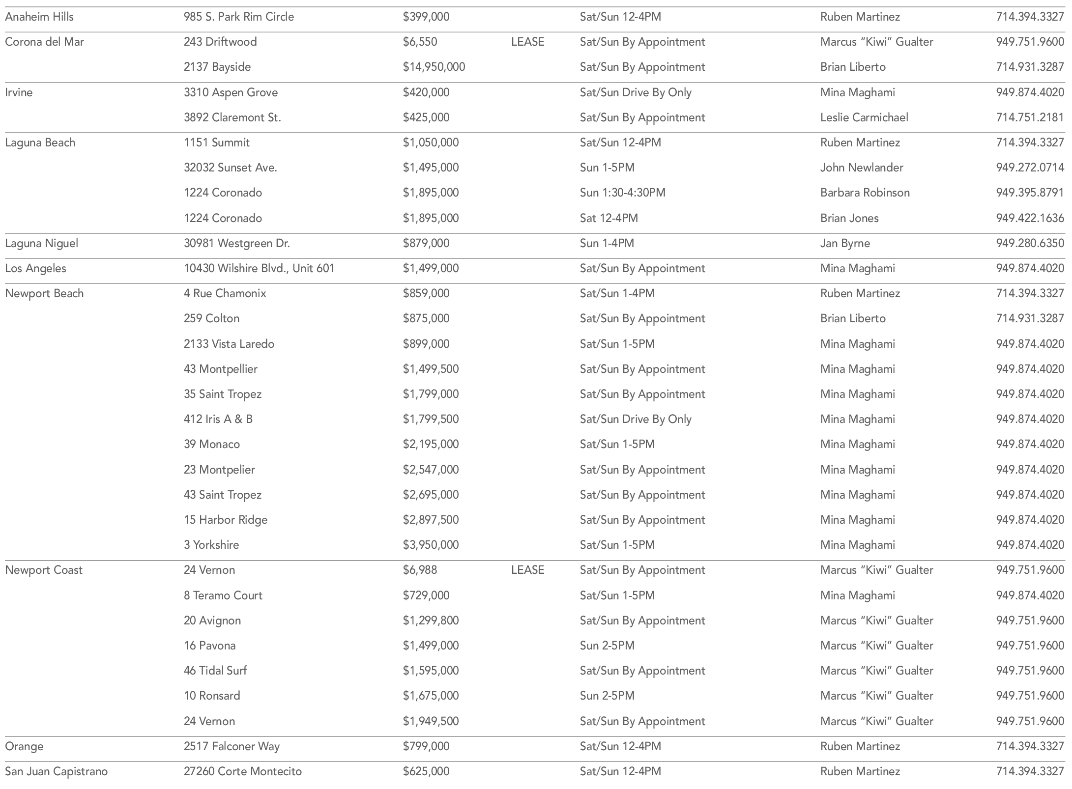 24 Vernon $1,949,500 Sat/Sun By Appointment Marcus “Kiwi” Gualter 949.751.9600