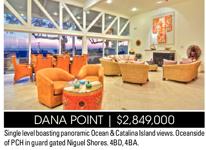 Single level boasting panoramic Ocean & Catalina Island views. Oceanside of PCH in guard gated Niguel Shores. 4BD, 4BA.