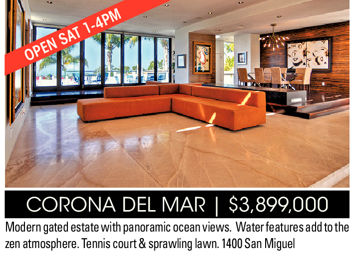Modern gated estate with panoramic ocean views. Water features add to the zen atmosphere. Tennis court & sprawling lawn. 1400 San Miguel