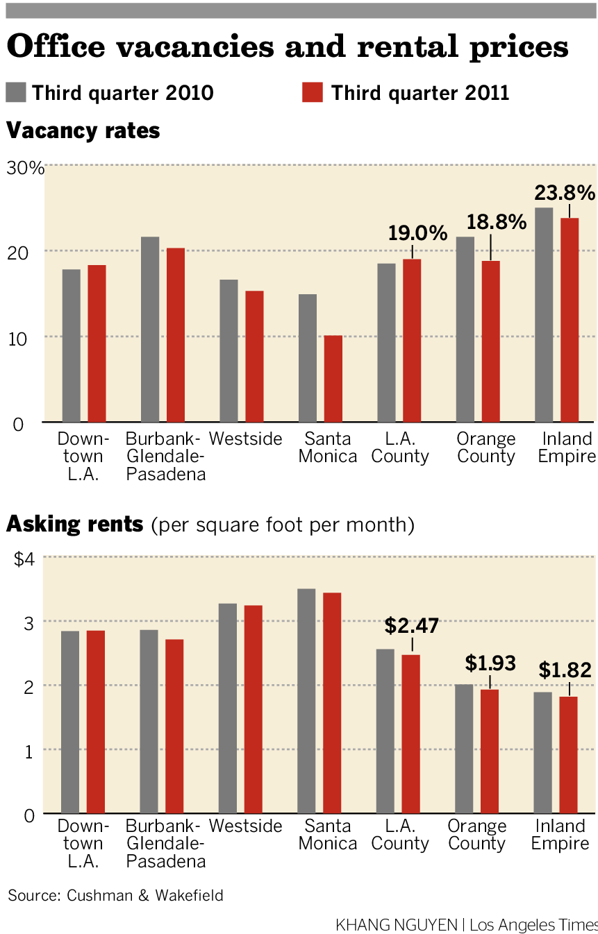 The Inland Empire is still suffering from a host of office projects built on speculation during the last boom, he said. Vacancy there is almost 24%, barely lower than it was last year.