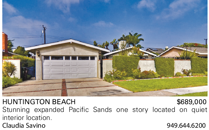 HUNTINGTON BEACH $689,000 Stunning expanded Pacific Sands one story located on quiet interior location. Claudia Savino 949.644.6200