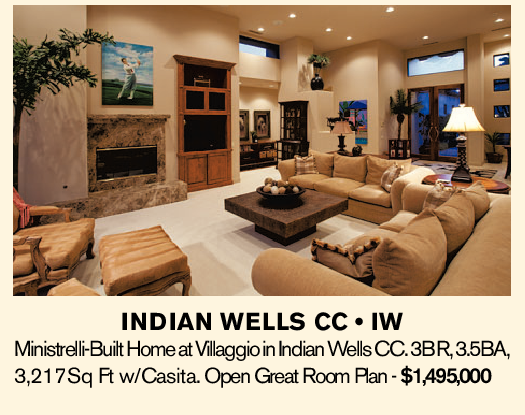 INDIAN WELLS CC • IW Ministrelli-Built Home at Villaggio in Indian Wells CC. 3BR, 3.5BA, 3,217Sq Ft w/Casita. Open Great Room Plan - $1,495,000