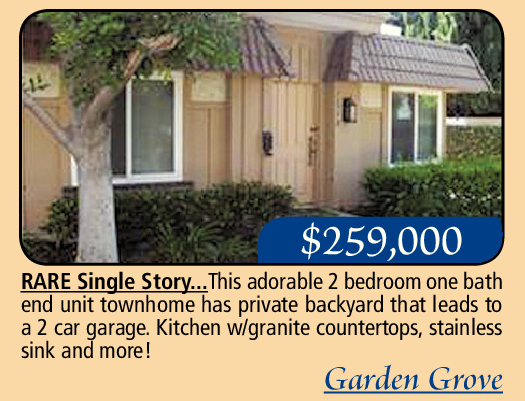 RARE Single Story...This adorable 2 bedroom one bath end unit townhome has private backyard that leads to a 2 car garage. Kitchen w/granite countertops, stainless sink and more!