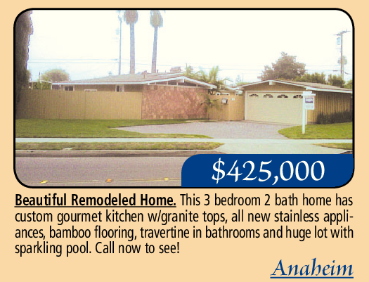 Beautiful Remodeled Home. This 3 bedroom 2 bath home has custom gourmet kitchen w/granite tops, all new stainless appliances, bamboo flooring, travertine in bathrooms and huge lot with sparkling pool. Call now to see!