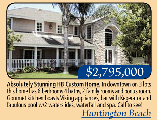 $2,795,000 Absolutely Stunning HB Custom Home. In downtown on 3 lots this home has 6 bedrooms 4 baths, 2 family rooms and bonus room. Gourmet kitchen boasts Viking appliances, bar with Kegerator and fabulous pool w/2 waterslides, waterfall and spa. Call to see! Huntington Beach