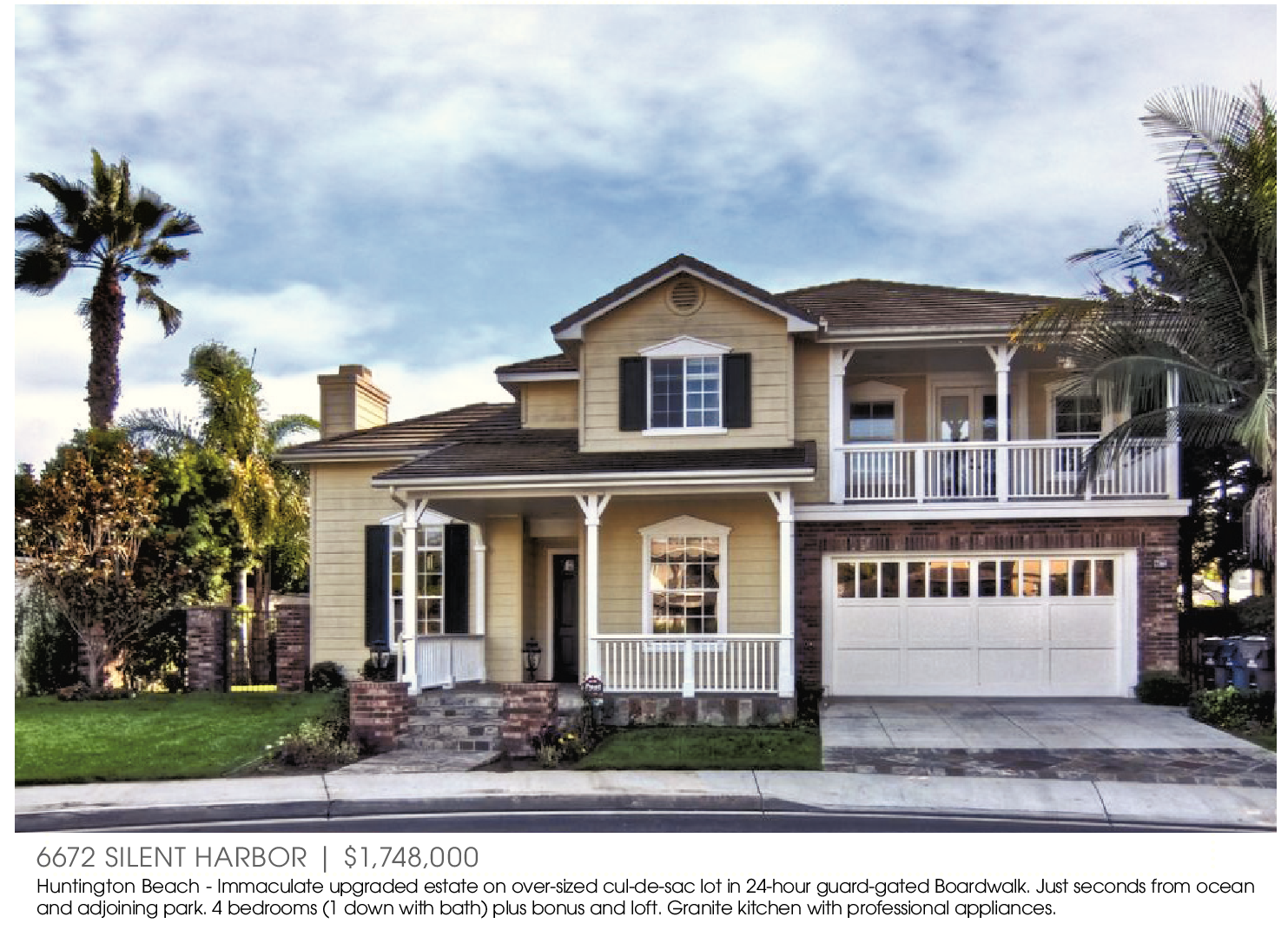 6672 SILENT HARBOR | $1,748,000 Huntington Beach - Immaculate upgraded estate on over-sized cul-de-sac lot in 24-hour guard-gated Boardwalk. Just seconds from ocean and adjoining park. 4 bedrooms (1 down with bath) plus bonus and loft. Granite kitchen with professional appliances.