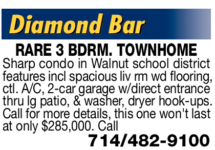 RARE 3 BDRM. TOWNHOME Sharp condo in Walnut school district features incl spacious liv rm wd flooring, ctl. A/C, 2-car garage w/direct entrance