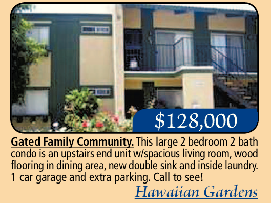 Gated Family Community. This large 2 bedroom 2 bath condo is an upstairs end unit w/spacious living room, wood flooring in dining area, new double sink and inside laundry. 1 car garage and extra parking. Call to see!
