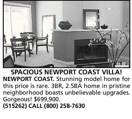 NEWPORT COAST. Stunning model home for this price is rare. 3BR, 2.5BA home in pristine neighborhood boasts unbelievable upgrades. Gorgeous! $699,900. (515262) CALL (800) 258-7630