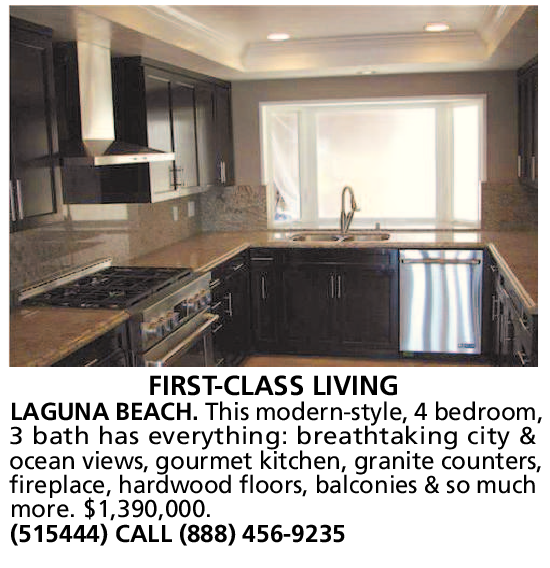 FIRST-CLASS LIVING LAGUNA BEACH. This modern-style, 4 bedroom, 3 bath has everything: breathtaking city & ocean views, gourmet kitchen, granite counters, fireplace, hardwood floors, balconies & so much more. $1,390,000. (515444) CALL (888) 456-9235