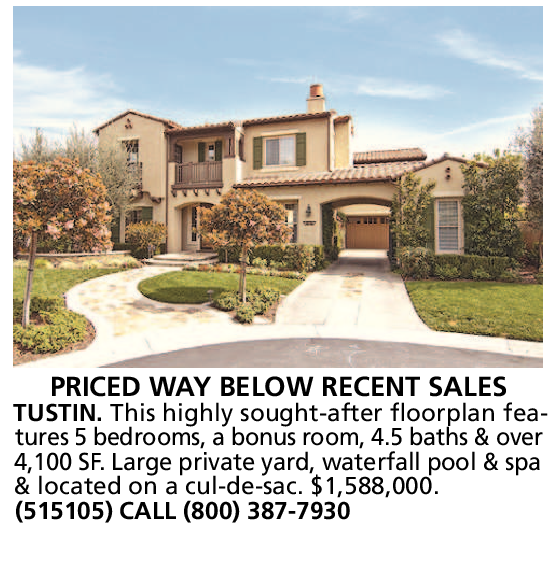 PRICED WAY BELOW RECENT SALES TUSTIN. This highly sought-after floorplan features 5 bedrooms, a bonus room, 4.5 baths & over 4,100 SF. Large private yard, waterfall pool & spa & located on a cul-de-sac. $1,588,000.