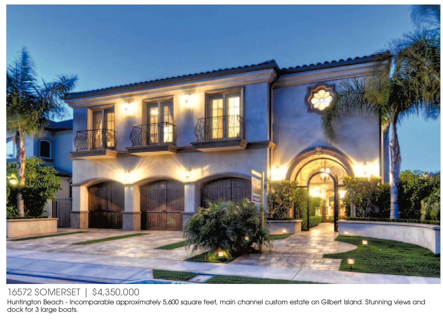 16572 SOMERSET | $4,350,000 Huntington Beach - Incomparable approximately 5,600 square feet, main channel custom estate on Gilbert Island. Stunning views and dock for 3 large boats.