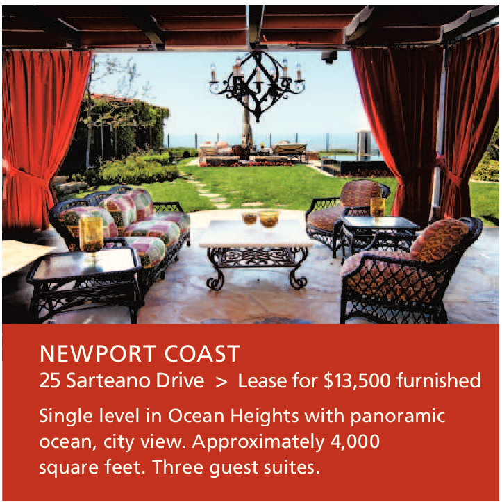 NEWPORT COAST 25 Sarteano Drive > Lease for $13,500 furnished