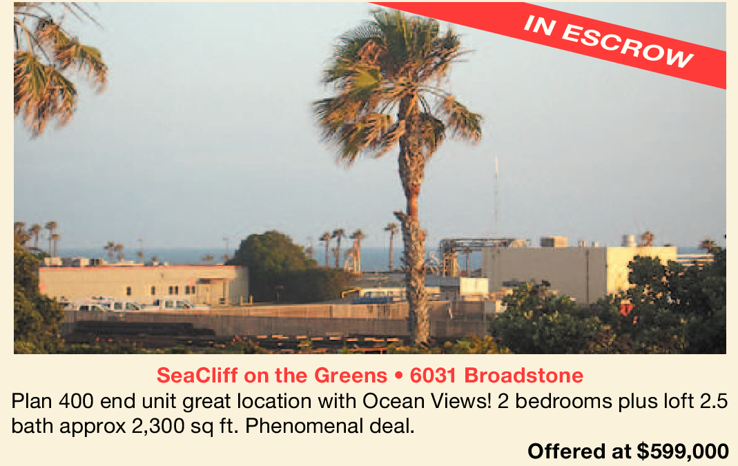 SeaCliff on the Greens • 6031 Broadstone Plan 400 end unit great location with Ocean Views! 2 bedrooms plus loft 2.5 bath approx 2,300 sq ft. Phenomenal deal.