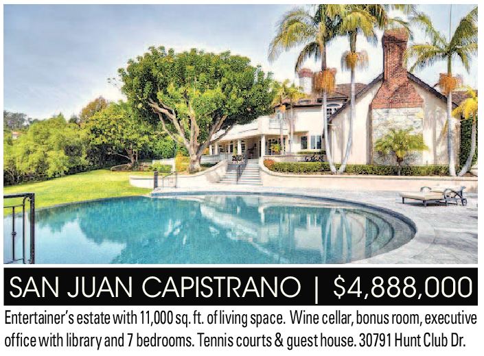 Entertainer’s estate with 11,000 sq. ft. of living space. Wine cellar, bonus room, executive office with library and 7 bedrooms. Tennis courts & guest house. 30791 Hunt Club Dr.