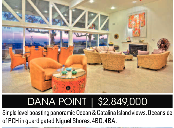 Single level boasting panoramic Ocean & Catalina Island views. Oceanside of PCH in guard gated Niguel Shores. 4BD, 4BA.