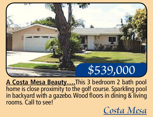 A Costa Mesa Beauty….This 3 bedroom 2 bath pool home is close proximity to the golf course. Sparkling pool