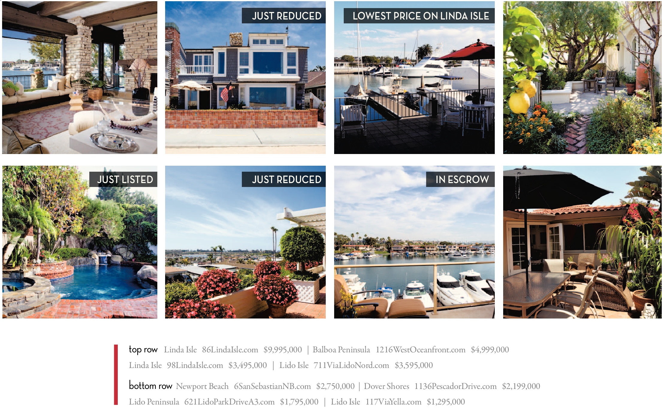 Linda Isle 86LindaIsle.com $9,995,000 | Balboa Peninsula 1216WestOceanfront.com $4,999,000