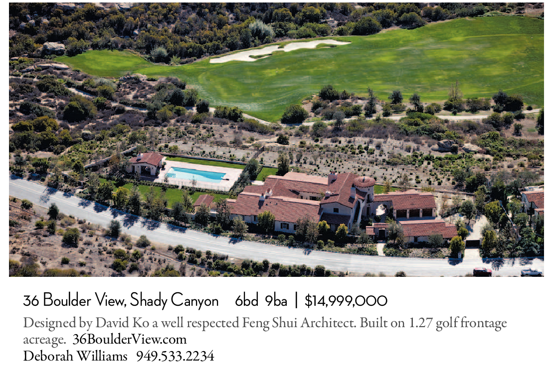 Designed by David Ko a well respected Feng Shui Architect. Built on 1.27 golf frontage acreage. 36BoulderView.com Deborah Williams 949.533.2234