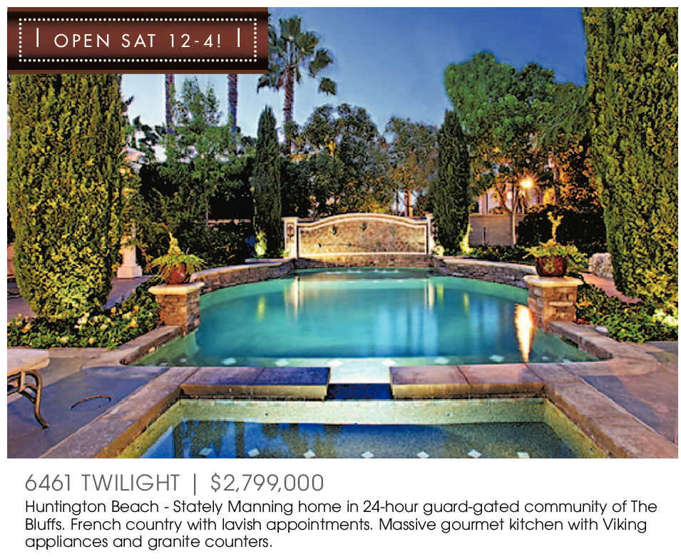 Huntington Beach - Stately Manning home in 24-hour guard-gated community of The Bluffs. French country with lavish appointments. Massive gourmet kitchen with Viking appliances and granite counters.