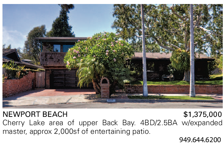 NEWPORT BEACH $1,375,000 Cherry Lake area of upper Back Bay. 4BD/2.5BA w/expanded master, approx 2,000sf of entertaining patio.