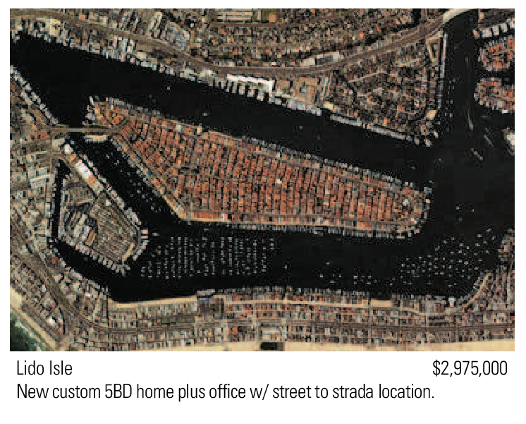 Lido Isle $2,975,000 New custom 5BD home plus office w/ street to strada location.